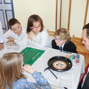 Nach zwei spannenden Stunden ging der Besuch in der Spielbank leider schon wieder zu Ende. Zum Abschluss wurden die Schulden an die Bank zurückgezahlt, die Sieger gekrönt und die restlichen Jetons noch in Naturalien umgetauscht.